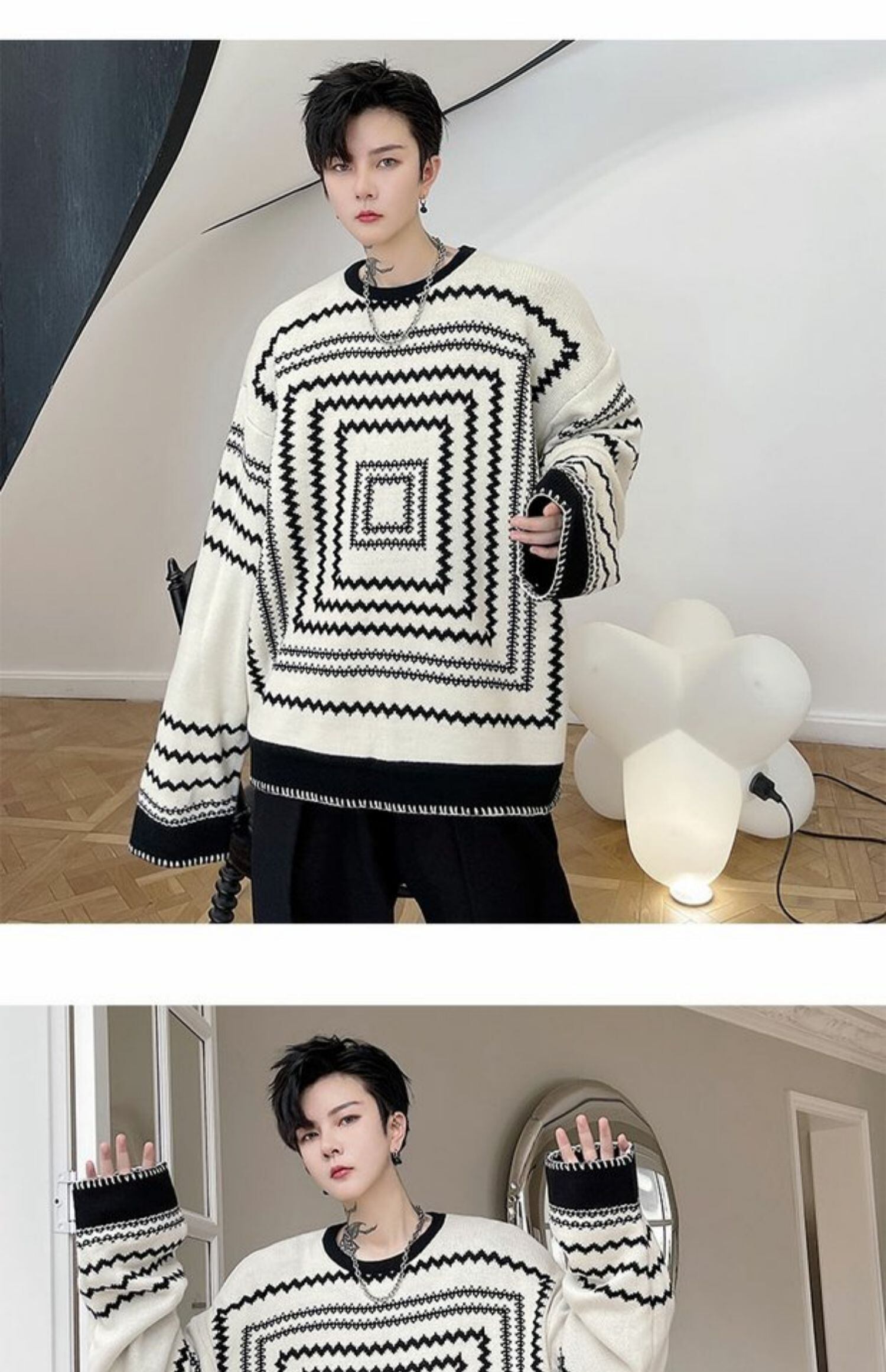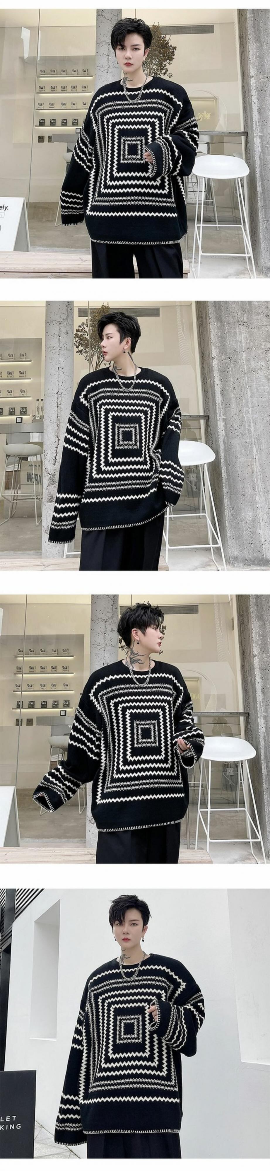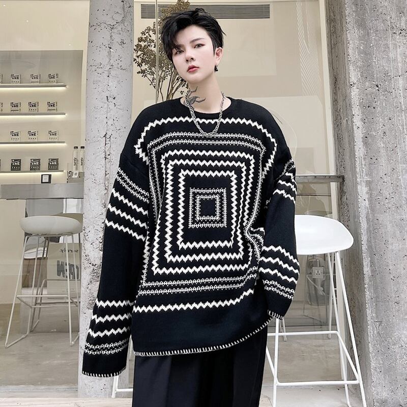 病みカッコイイ メンズファッション ストリートファッション ヒップホップ 個性的 裏原 オータムウィンタースタンダードジャカードセーター ルーズスタイル レトロ 秋物 冬物 ✝ おしゃれ メンズ 94926856653