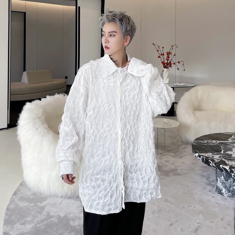 病みカッコイイ メンズファッション ストリートファッション ヒップホップ 個性的 裏原 ソリッド カラーシャツ ルーズ ロング ストリート ソリッドカラー ✝ おしゃれ メンズ 78268034959