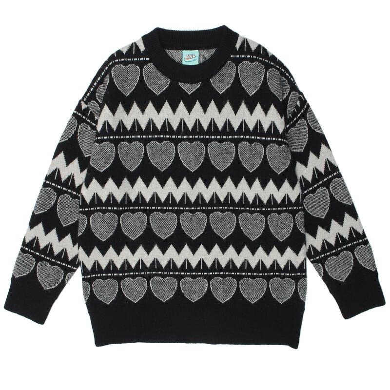 病みカッコイイ メンズファッション ストリートファッション ヒップホップ 個性的 裏原 スタンダードジャカードラウンドネックセーター レディースルーズジャケット レトロ Oネック ✝ メンズファッション6087972626