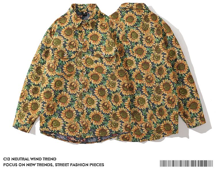 病みカッコイイ メンズファッション ストリートファッション ヒップホップ 個性的 裏原 スタンダード刺繍シャツ オータムルーズジャケット ロング レトロ 秋物 フラワーデザイン ✝ メンズファッション24705809990