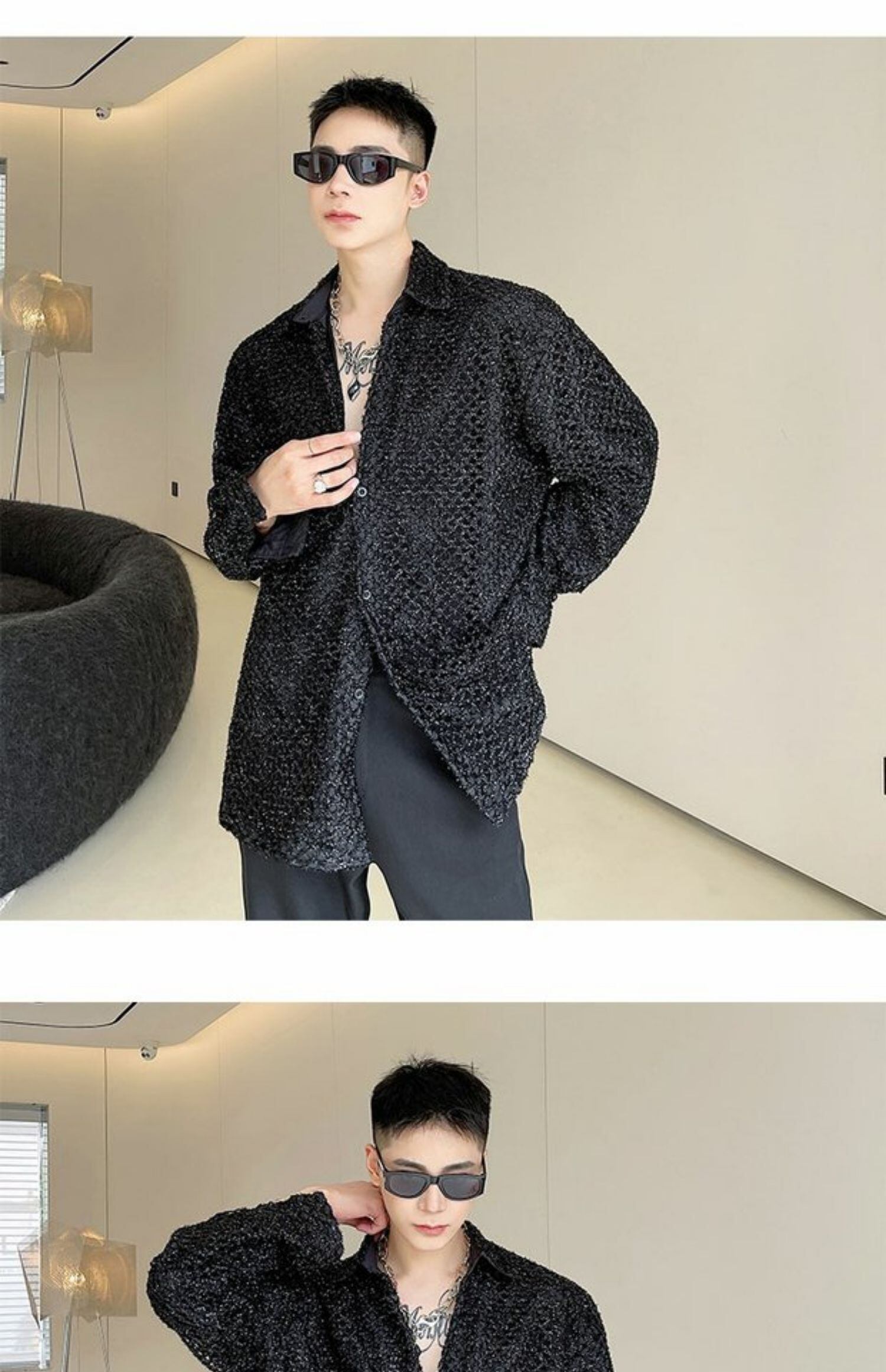 病みカッコイイ メンズファッション ストリートファッション ヒップホップ 個性的 裏原 オータムシャツ ルーズレースダブル ロング 秋物 ステッチ ✝ おしゃれ メンズ 50993566662