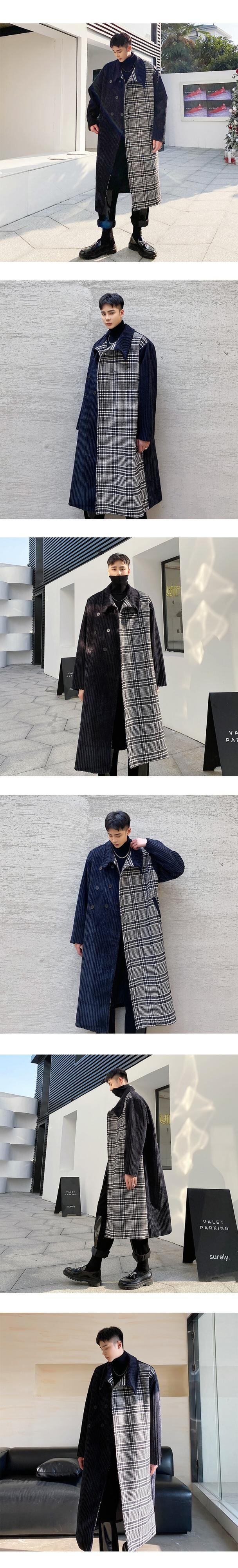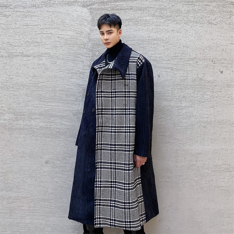 病みカッコイイ メンズファッション ストリートファッション ヒップホップ 個性的 裏原 オータムウィンタージャケット コーデュロイ格子柄コート ロング ストリート 秋物 冬物 ステッチ ✝ おしゃれ メンズ 52262747833
