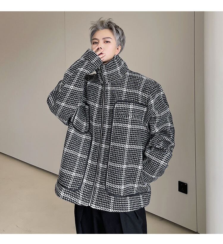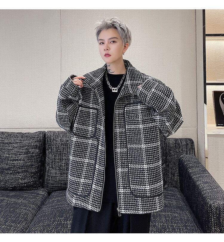 病みカッコイイ メンズファッション ストリートファッション ヒップホップ 個性的 裏原 オータムウィンタースタンドカラーカラージャケット ルーズ格子柄 ストリート 秋物 冬物 ポケット多め マルチポケット ✝ おしゃれ メンズ 78908749172