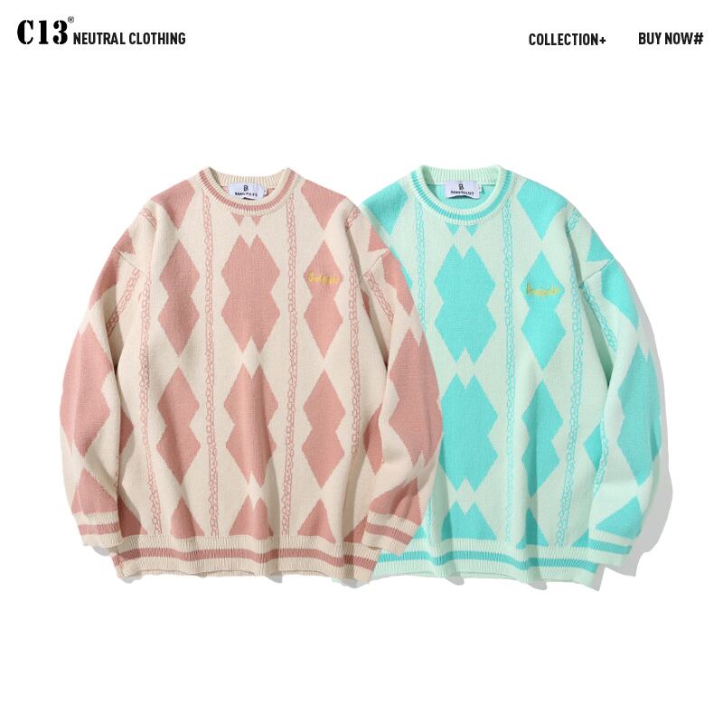 病みカッコイイ メンズファッション ストリートファッション ヒップホップ 個性的 裏原 スタンダードジャカードカラーラウンドネックセーター レディースルーズニットジャケット レトロ Oネック ✝ メンズファッション67295134604