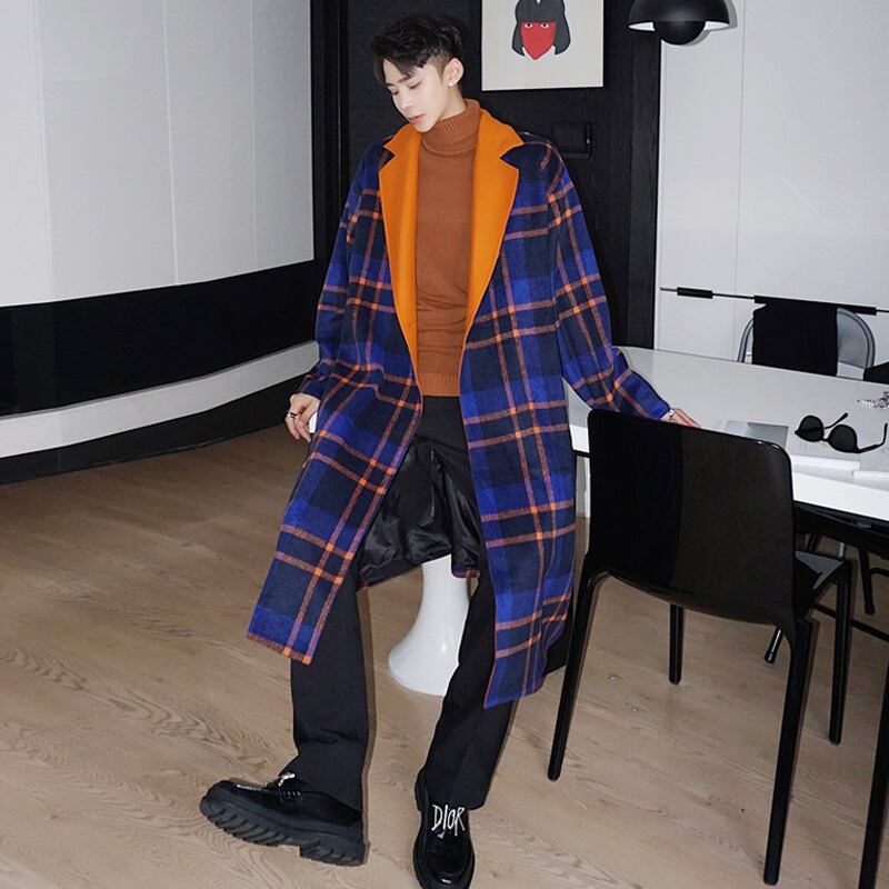 病みカッコイイ メンズファッション ストリートファッション ヒップホップ 個性的 裏原 ウィンター格子柄コート ロングカラージャケット ストリート 冬物 ✝ おしゃれ メンズ 22881377789