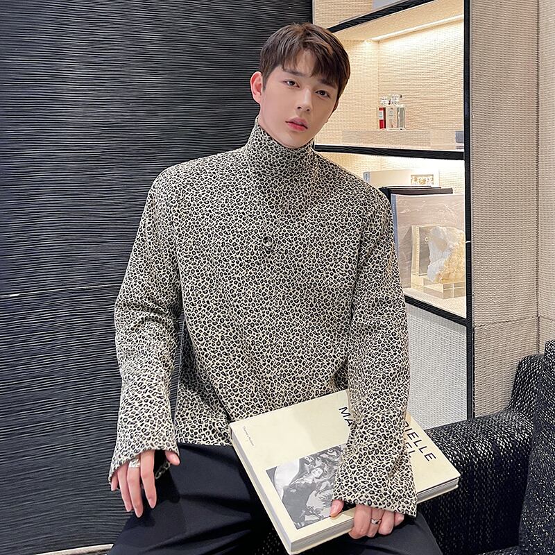 病みカッコイイ メンズファッション ストリートファッション ヒップホップ 個性的 裏原 オータムウィンターレッドカラーレオパードTシャツ シャツ ニット 秋物 冬物 ✝ おしゃれ メンズ 82284410329