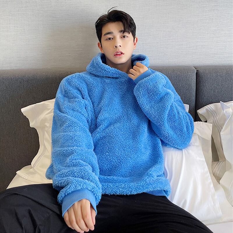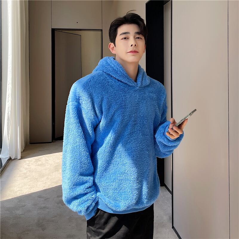 病みカッコイイ メンズファッション ストリートファッション ヒップホップ 個性的 裏原 ウィンターウールフードスウェット ルーズプルオーバー トップス ソリッド カラージャケット 冬物 ソリッドカラー ✝ おしゃれ メンズ 84331605727