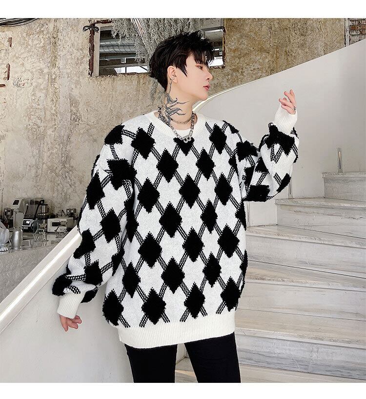 病みカッコイイ メンズファッション ストリートファッション ヒップホップ 個性的 裏原 スタンダードジャカードセーター ルーズプルオーバー トップス カジュアルラウンドネック レトロ ウィンター 冬物 Oネック ✝ おしゃれ メンズ 79553201299