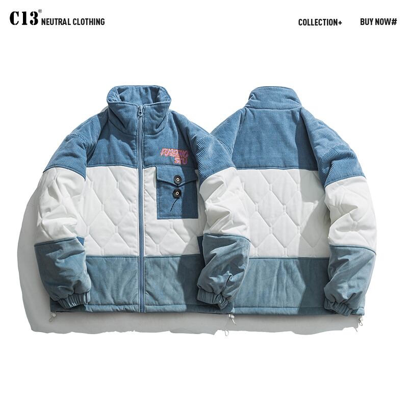 病みカッコイイ メンズファッション ストリートファッション ヒップホップ 個性的 裏原 ウィンタースタンダードコーデュロイブルーホワイトカラージャケット ルーズ コットン レトロ ストリート 冬物 ✝ メンズファッション39815233493