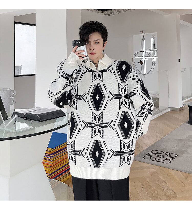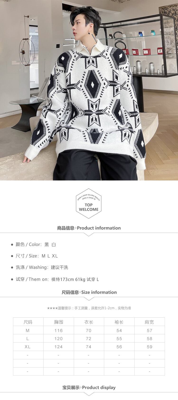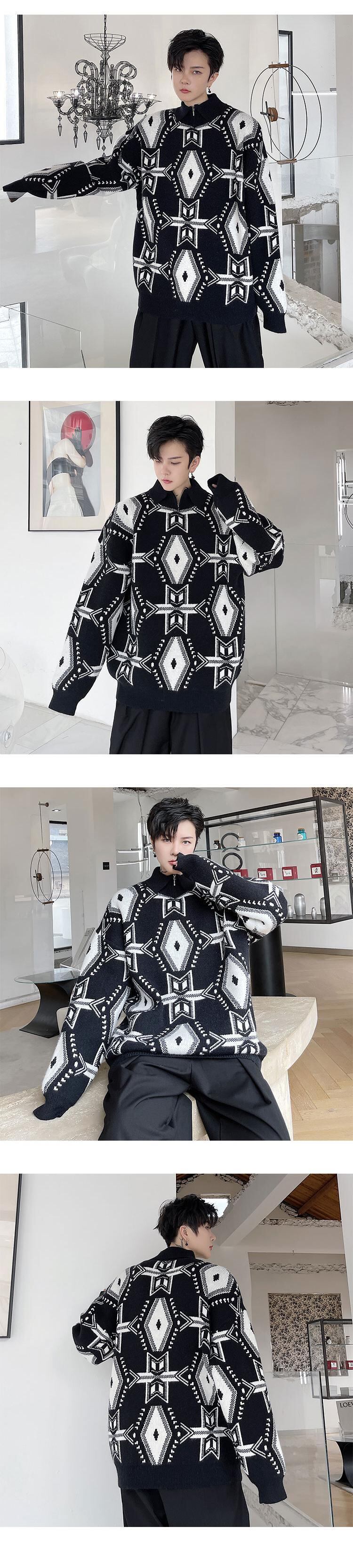 病みカッコイイ メンズファッション ストリートファッション ヒップホップ 個性的 裏原 オータムウィンタースタンダードエスニックジャカードセーター ルーズスタイルプルオーバー レトロ 秋物 冬物 ✝ おしゃれ メンズ 89550654728