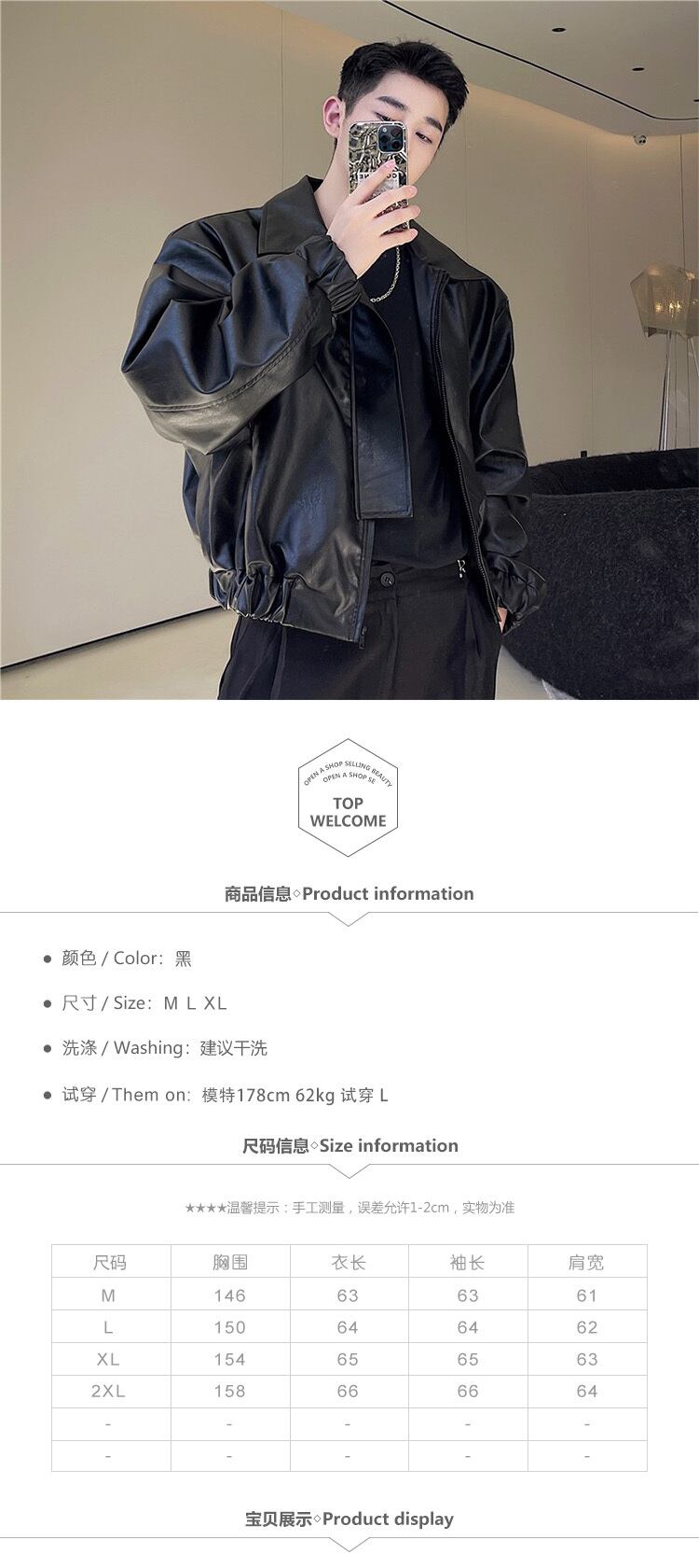 病みカッコイイ メンズファッション ストリートファッション ヒップホップ 個性的 裏原 オータムウィンタースタンダードショートブラックレザージャケット ルーズ レトロ 秋物 冬物 ✝ おしゃれ メンズ 23426570534