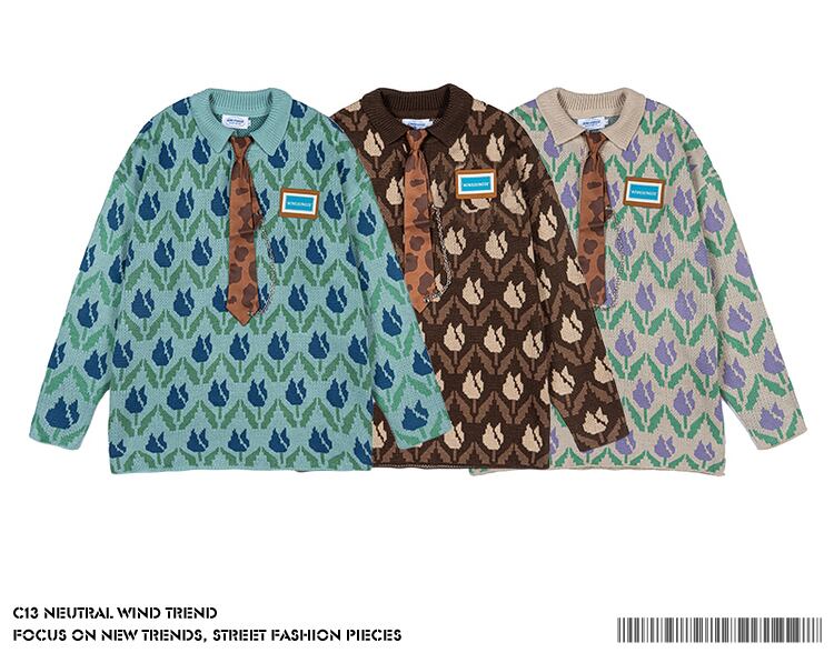 病みカッコイイ メンズファッション ストリートファッション ヒップホップ 個性的 裏原 カラーセーター レディースルーズスタイルカジュアル ✝ メンズファッション62095740750