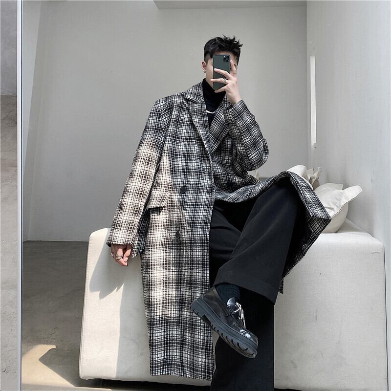 病みカッコイイ メンズファッション ストリートファッション ヒップホップ 個性的 裏原 ウィンタースタンダード格子柄コート レトロ レース 冬物 レースアップ ✝ おしゃれ メンズ 19023775186
