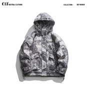 病みカッコイイ メンズファッション ストリートファッション ヒップホップ 個性的 裏原 迷彩柄プリントホワイトフードジャケット レディースウィンタールーズ ストリート 冬物 ✝ メンズファッション60312702533