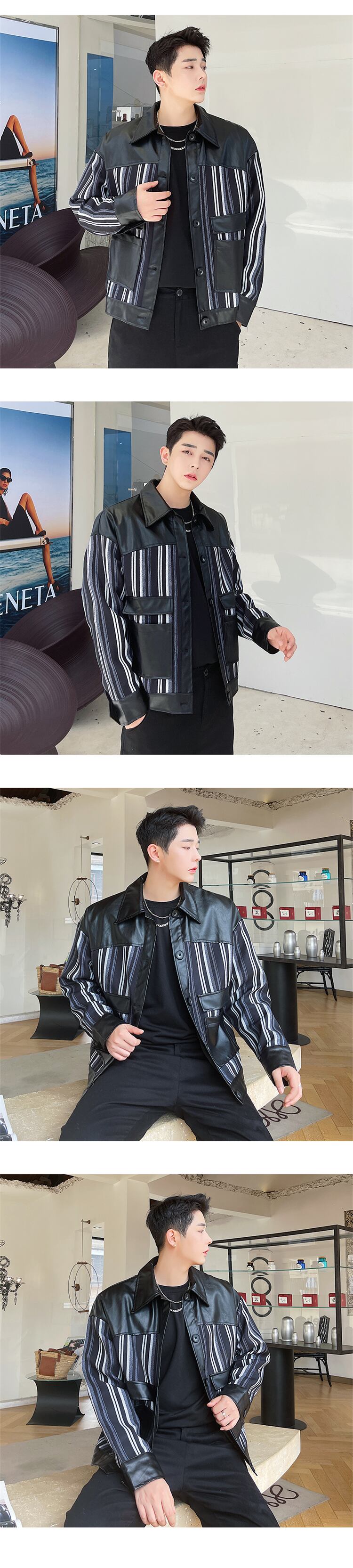 病みカッコイイ メンズファッション ストリートファッション ヒップホップ 個性的 裏原 オータムウィンタースタンダードストライプレザージャケット レトロ ストリート 秋物 冬物 ✝ おしゃれ メンズ 85173476078