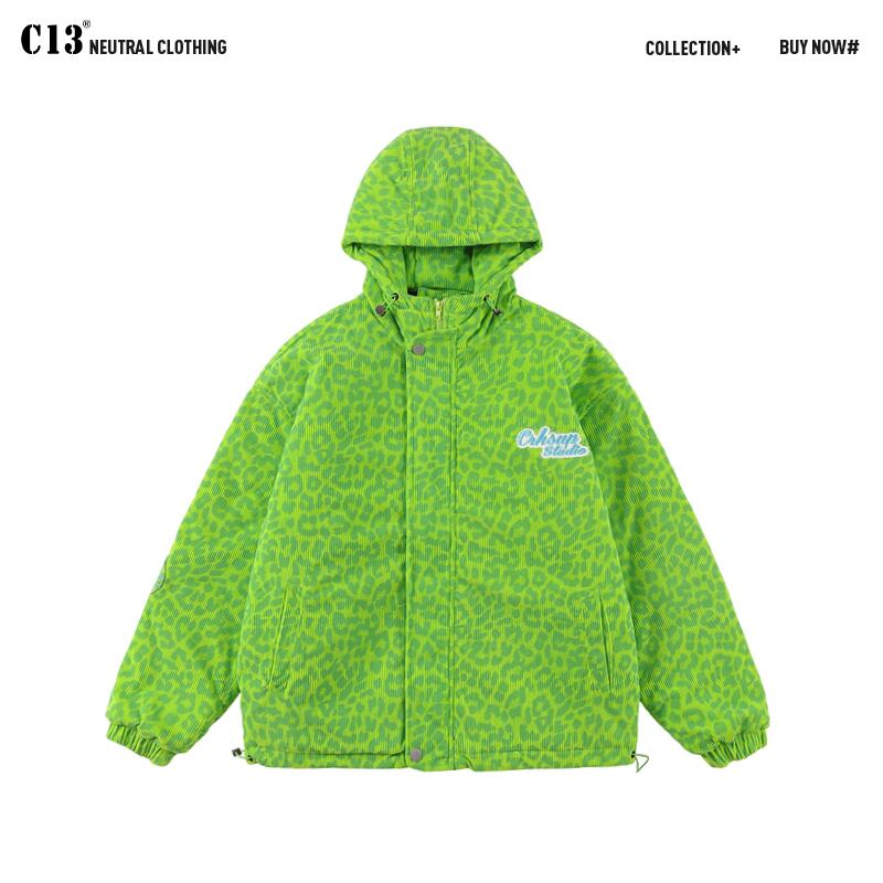 病みカッコイイ メンズファッション ストリートファッション ヒップホップ 個性的 裏原 レオパードプリント柄フードコーデュロイジャケット ルーズ コットン ストリート ✝ メンズファッション34053868094
