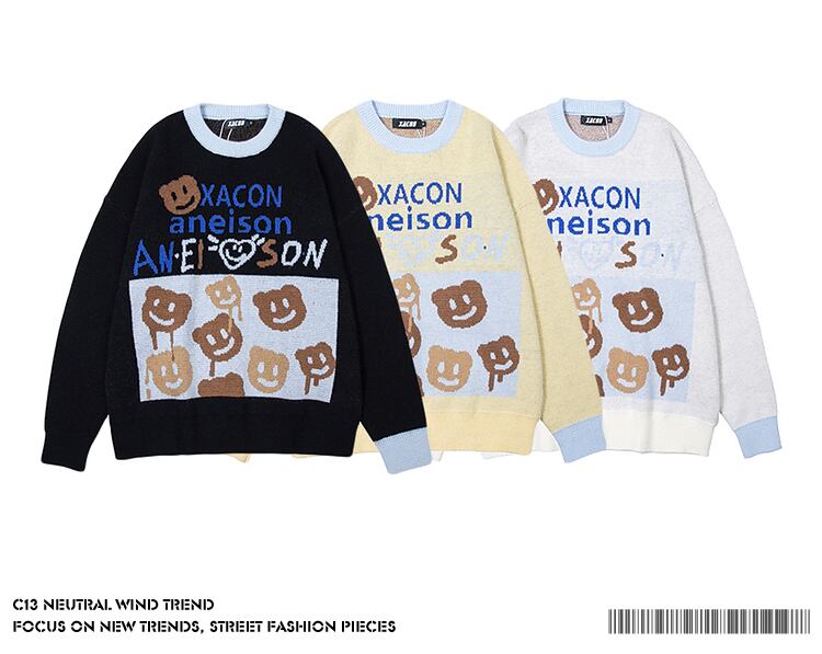 病みカッコイイ メンズファッション ストリートファッション ヒップホップ 個性的 裏原 ジャカードラウンドネックセーター レディースルーズプルオーバー Oネック ✝ メンズファッション33872918704