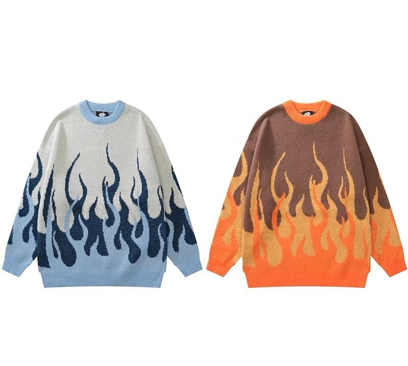 病みかっこいい フレーム柄 炎柄 セーター ニット