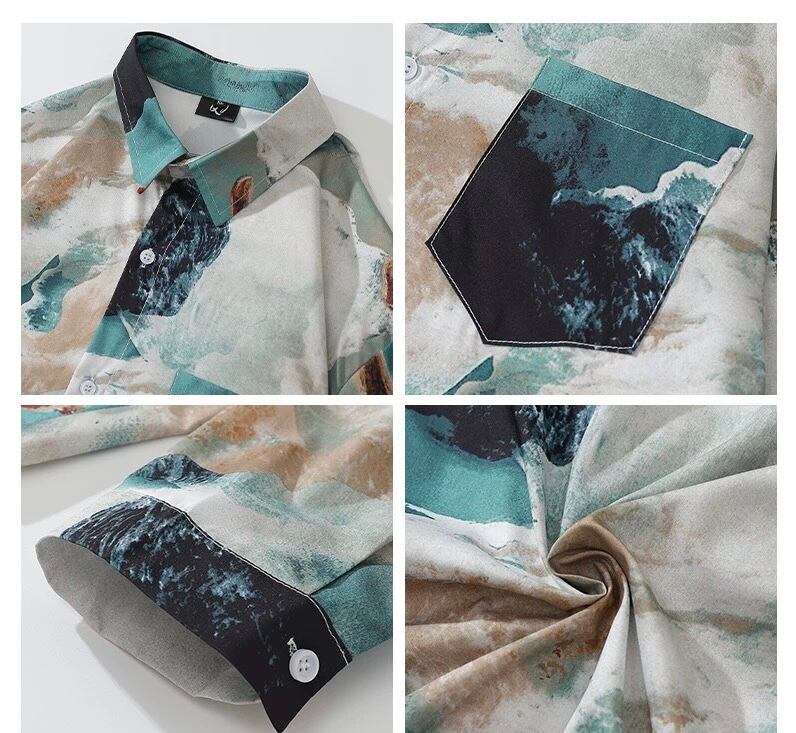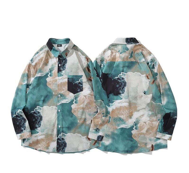 【病みカッコイイ】不規則染め 長袖シャツ メンズ おしゃれ 春服