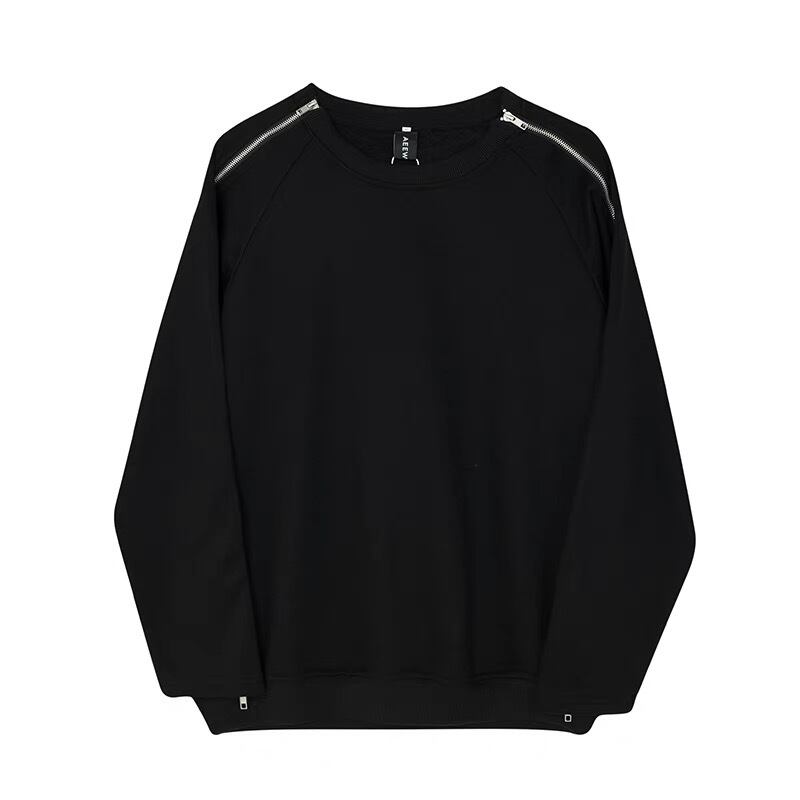 病みカッコイイ ダブルファスナーブラックトレーナー スウェット メンズ ファッション 韓国系メンズ ストリートファッション