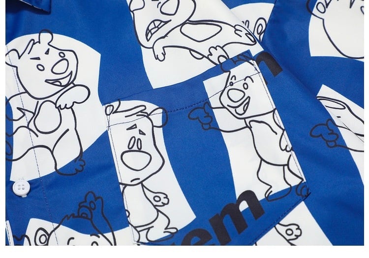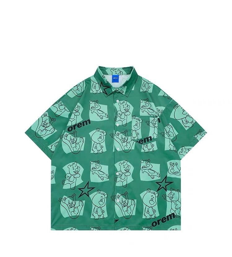 メンズ くまさんプリント 個性的半袖シャツ おしゃれ 原宿系 モード系 韓国メンズ服 mist23042802