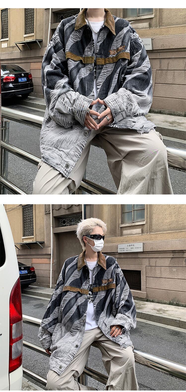 MIST デザイナーズデニムジャケット ゼブラグラデーションデニムジャケット 個性的 韓国 メンズ服 おしゃれ 大きいサイズ M〜3XL mist23092101