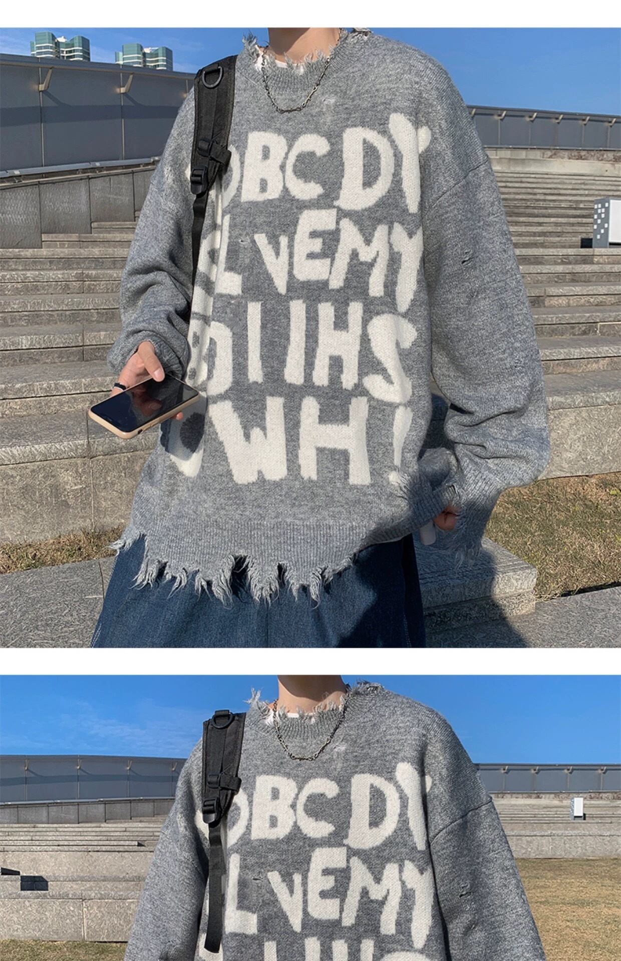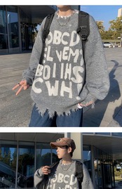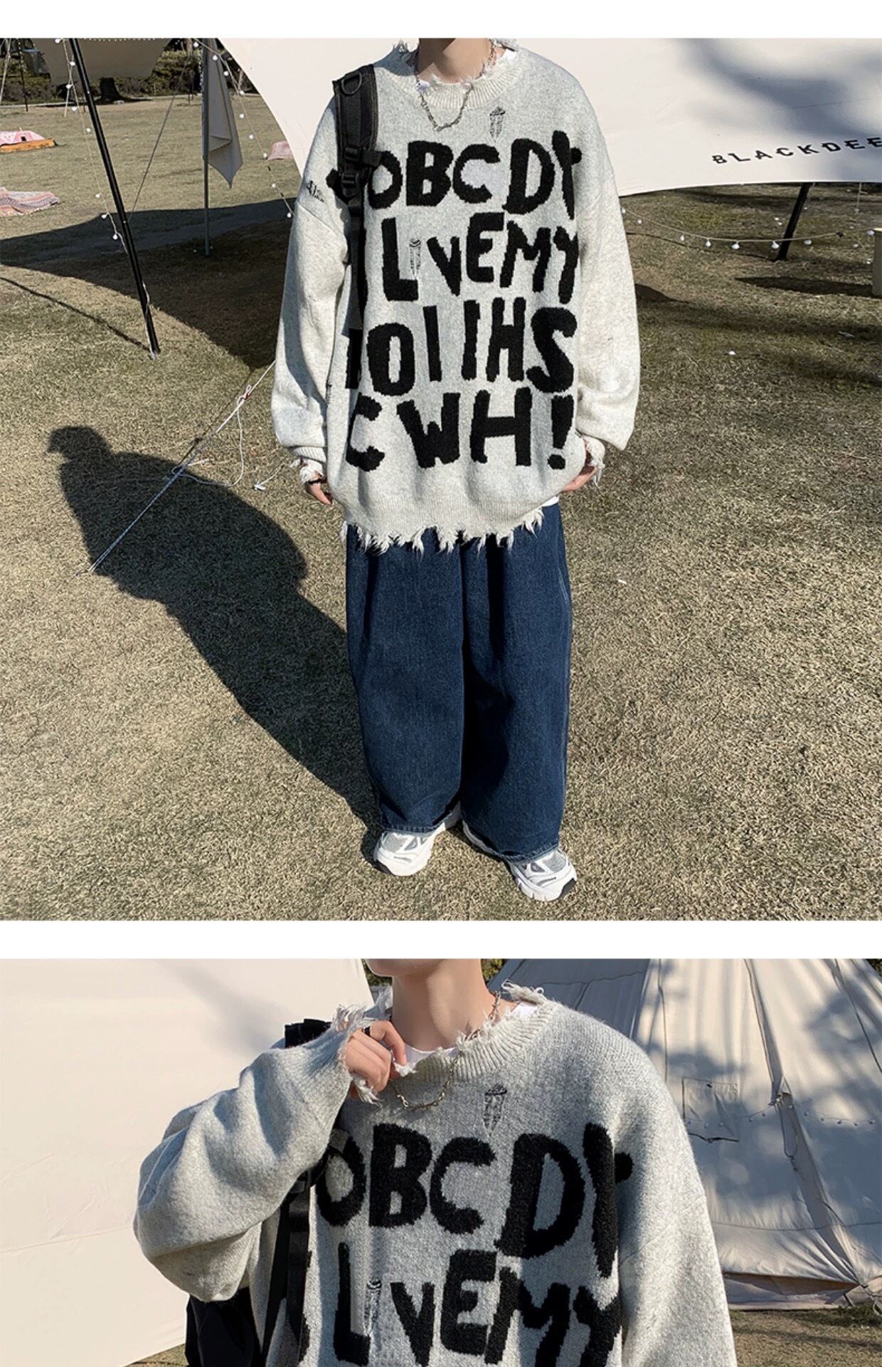 MIST メンズファッション ダメージ英文フォントニット メンズダメージニット 病みかっこいい ストリート メンズファッション mist23092801