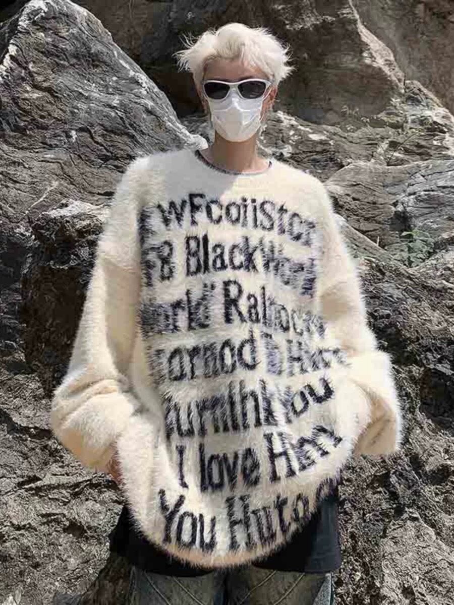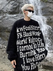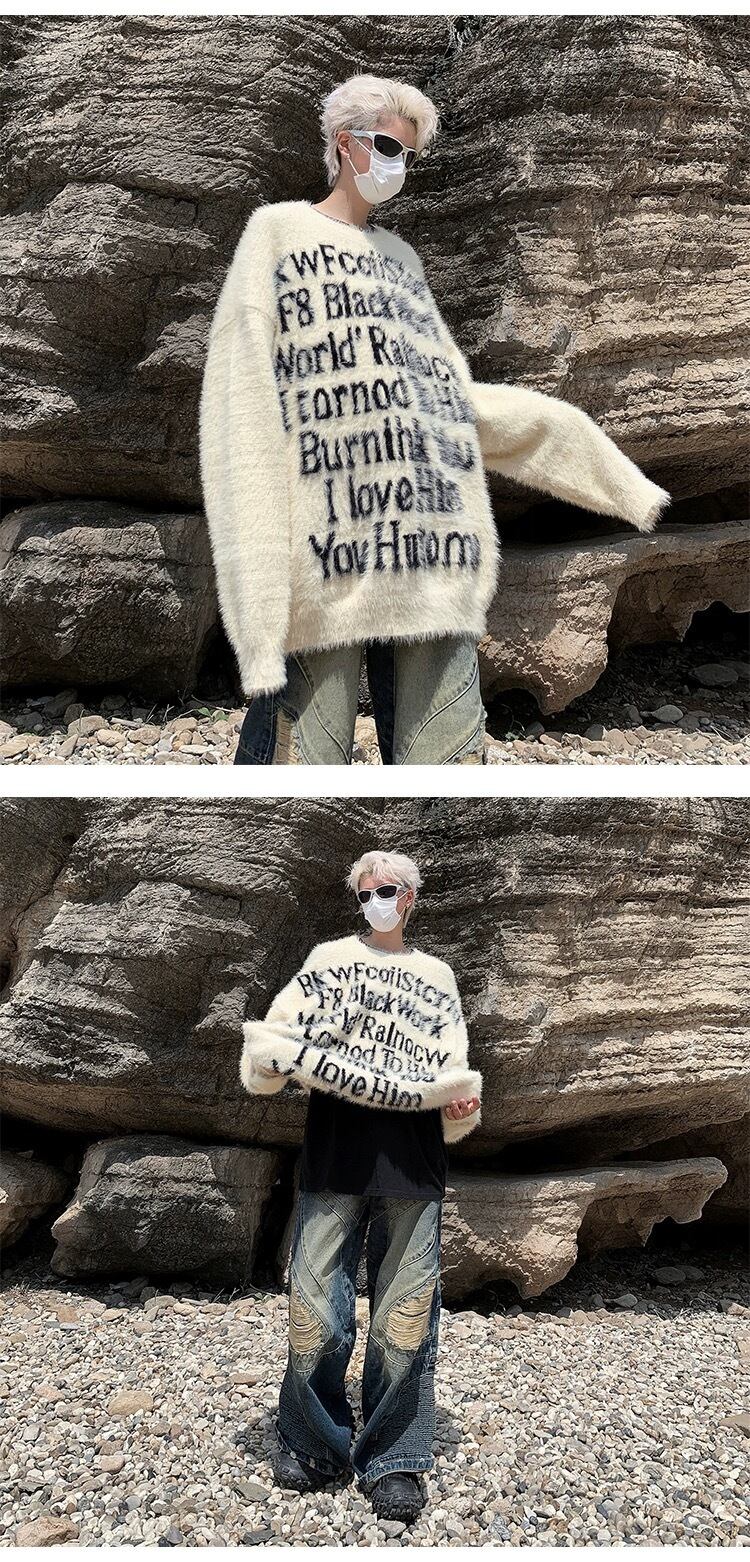 MIST メンズ フォントレターシャギーニット 2カラー おしゃれメンズ 秋冬 個性的 病みかっこいい メンズファッション 大きサイズ ユニセックス 韓国系 mist23102401