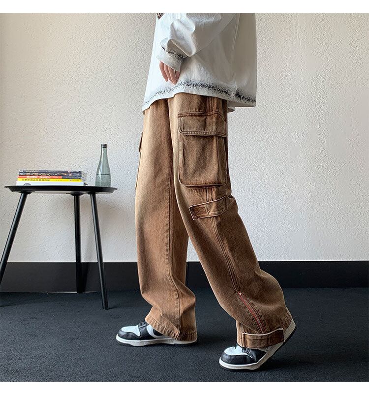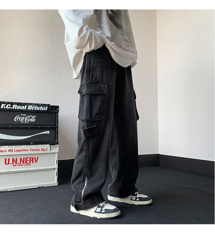 MIST メンズ ワークポケットジップストレートデニム 3カラー おしゃれメンズ 秋冬 個性的 病みかっこいい メンズファッション 大きサイズ ユニセックス 韓国系 mist23102404