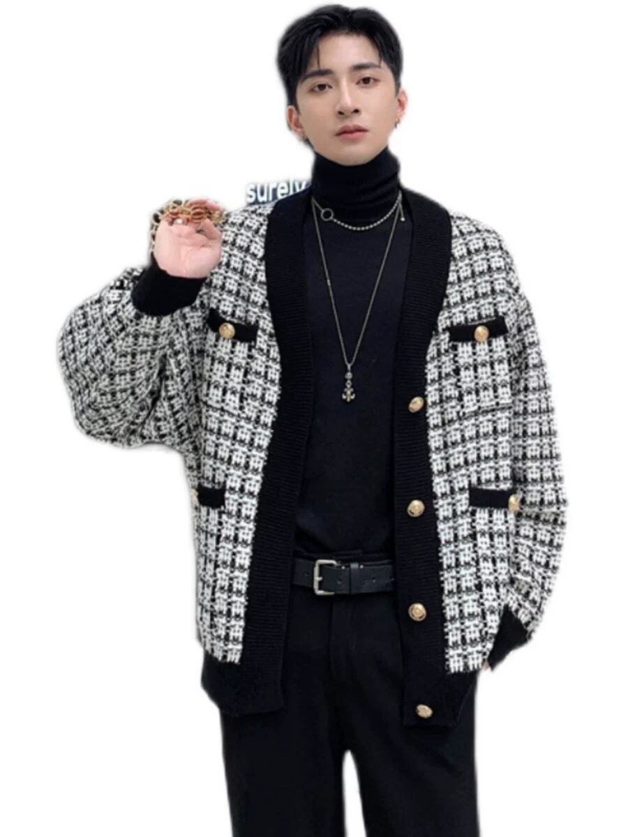 MIST メンズ デザイナーズ ツイードニットカーディガン おしゃれメンズ 秋冬 個性的 病みかっこいい メンズファッション 大きサイズ ユニセックス 韓国系 mist23120602