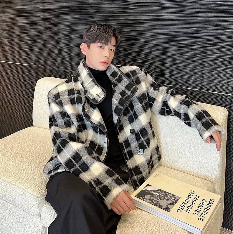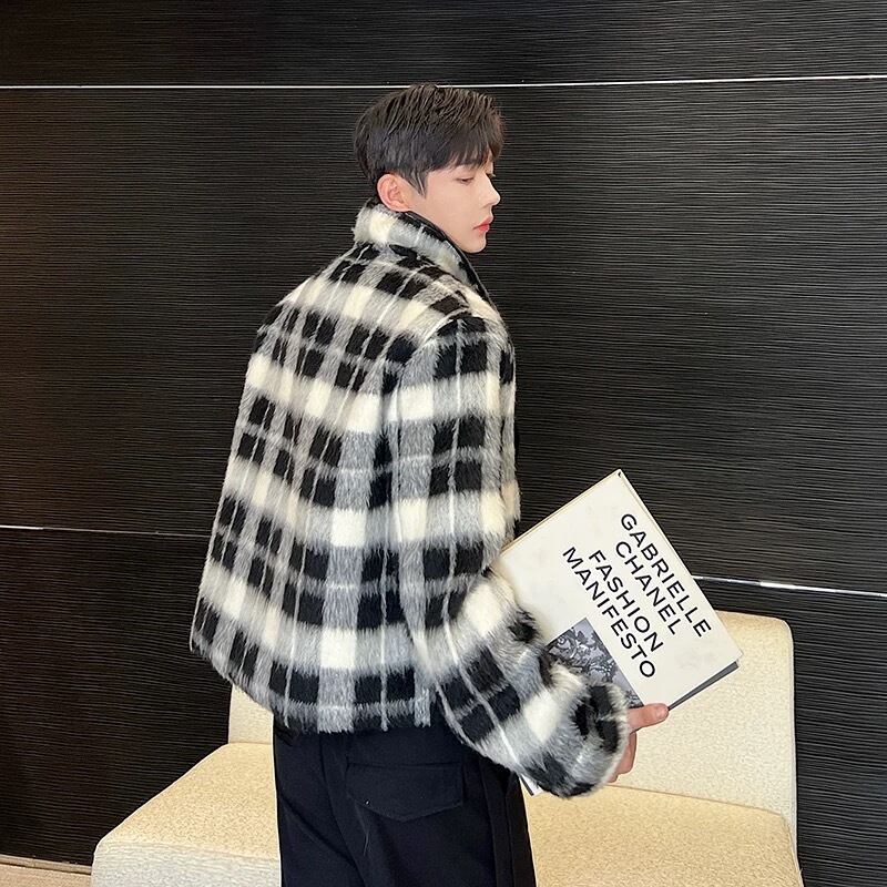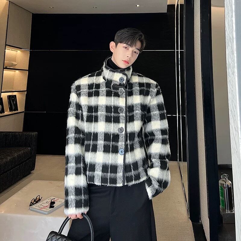MIST メンズ デザイナーズ ウールライクチェックショートコート おしゃれメンズ 秋冬 個性的 病みかっこいい メンズファッション 大きサイズ ユニセックス 韓国系 mist24010101