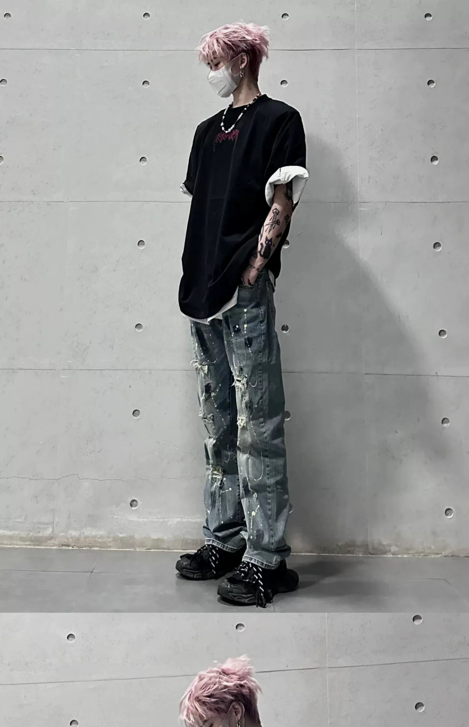 MIST メンズ ダメージヴィンテージデニムパンツ おしゃれメンズ 秋冬 個性的 病みかっこいい メンズファッション 大きサイズ ユニセックス 韓国系 mist24010901