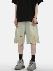 MIST 【2024春夏コレクション】S~3XL メンズ ダメージデニムハーフパンツ おしゃれメンズ 秋冬 個性的 病みかっこいい メンズファッション 大きサイズ ユニセックス 韓国系 春服 mist24042701