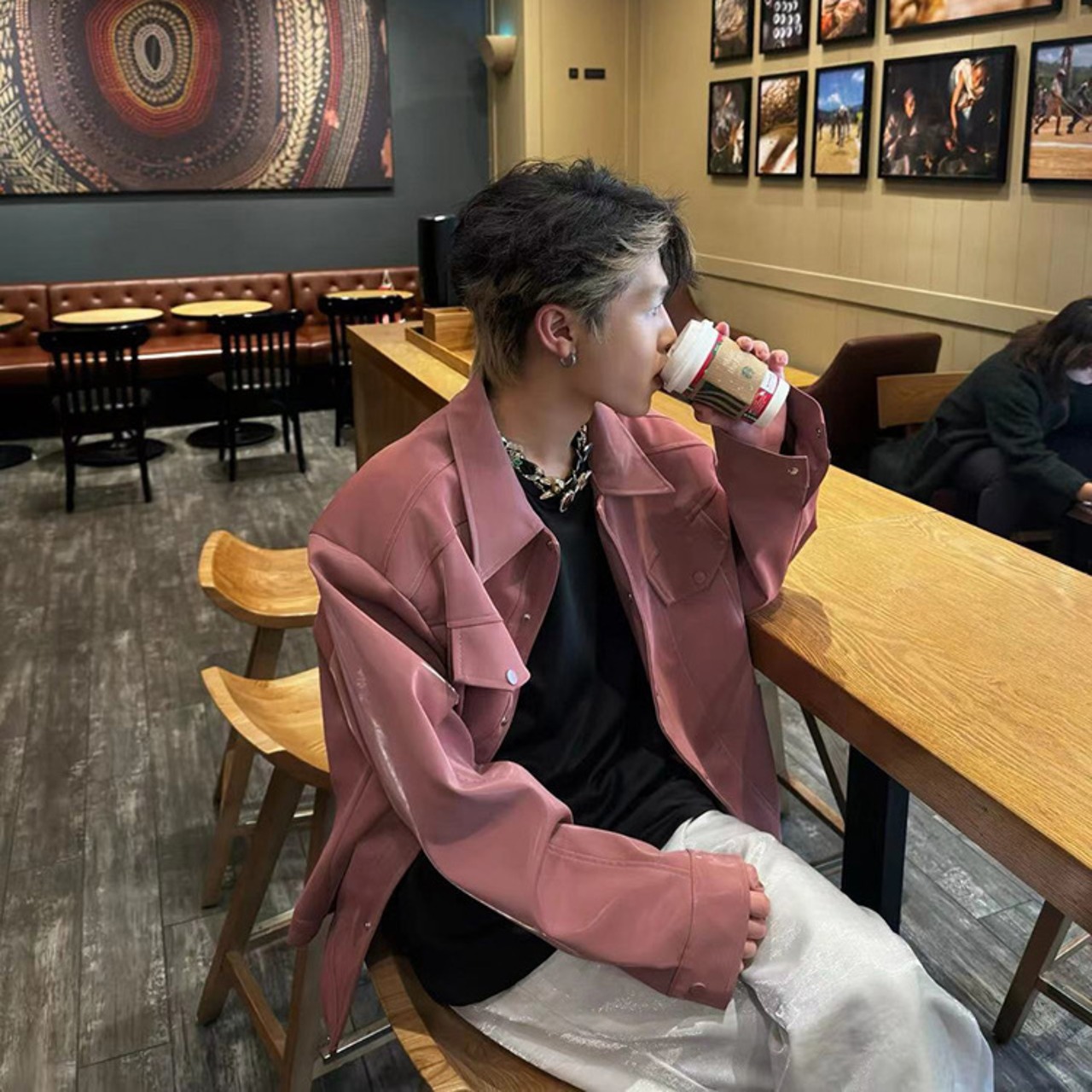 MIST メンズ M〜2XL 個性的 PUレザーピンクジャケット おしゃれメンズ 原宿系 晩夏 秋服 個性的 病みかっこいい メンズファッション 大きサイズ ユニセックス 韓国系 mist24080501