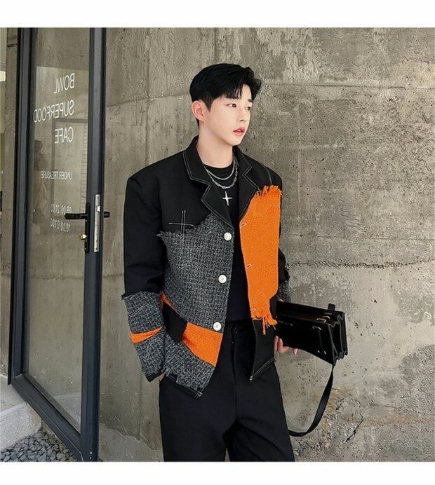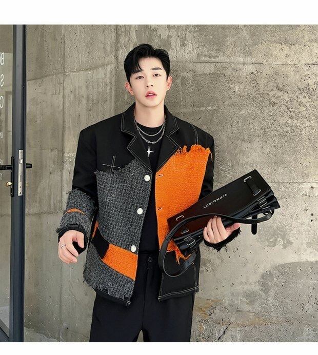 MIST メンズ M〜XL 個性的 デザイナーズツイードミックスジャケット おしゃれメンズ 秋冬 個性的 病みかっこいい メンズファッション 大きサイズ ユニセックス 韓国系 mist24091801