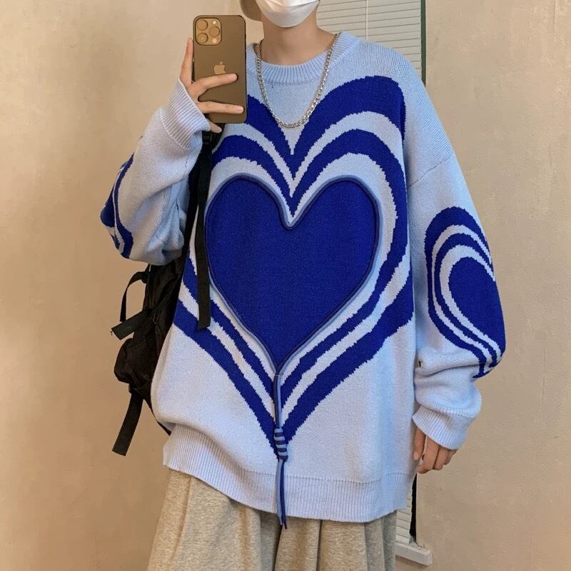 MIST メンズ M〜2XL 個性的ハートニット おしゃれメンズ 秋冬 個性的 病みかっこいい メンズファッション 大きサイズ ユニセックス 韓国系 mist24092201