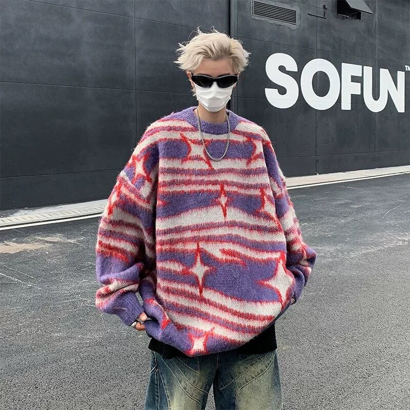 MIST メンズ S〜2XL 個性的 スターモチーフニット おしゃれメンズ 秋冬 個性的 病みかっこいい メンズファッション 大きサイズ ユニセックス 韓国系 mist24092501