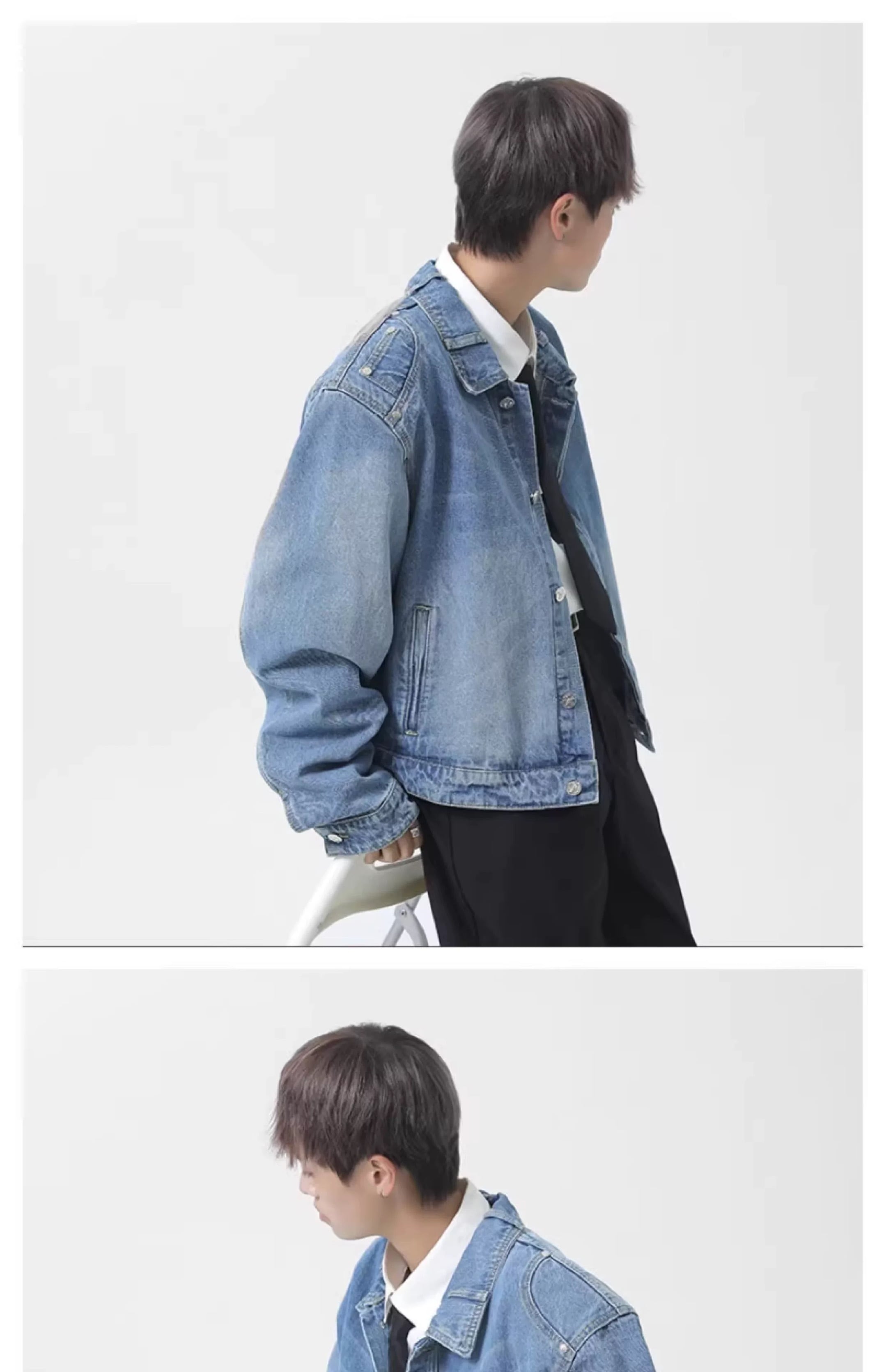 MIST メンズ S〜2XL 個性的 バックポケットデニムジャケット ライダースジャケット おしゃれメンズ 秋冬 アウター 個性的 病みかっこいい メンズファッション 大きサイズ ユニセックス 韓国系 mist24093001