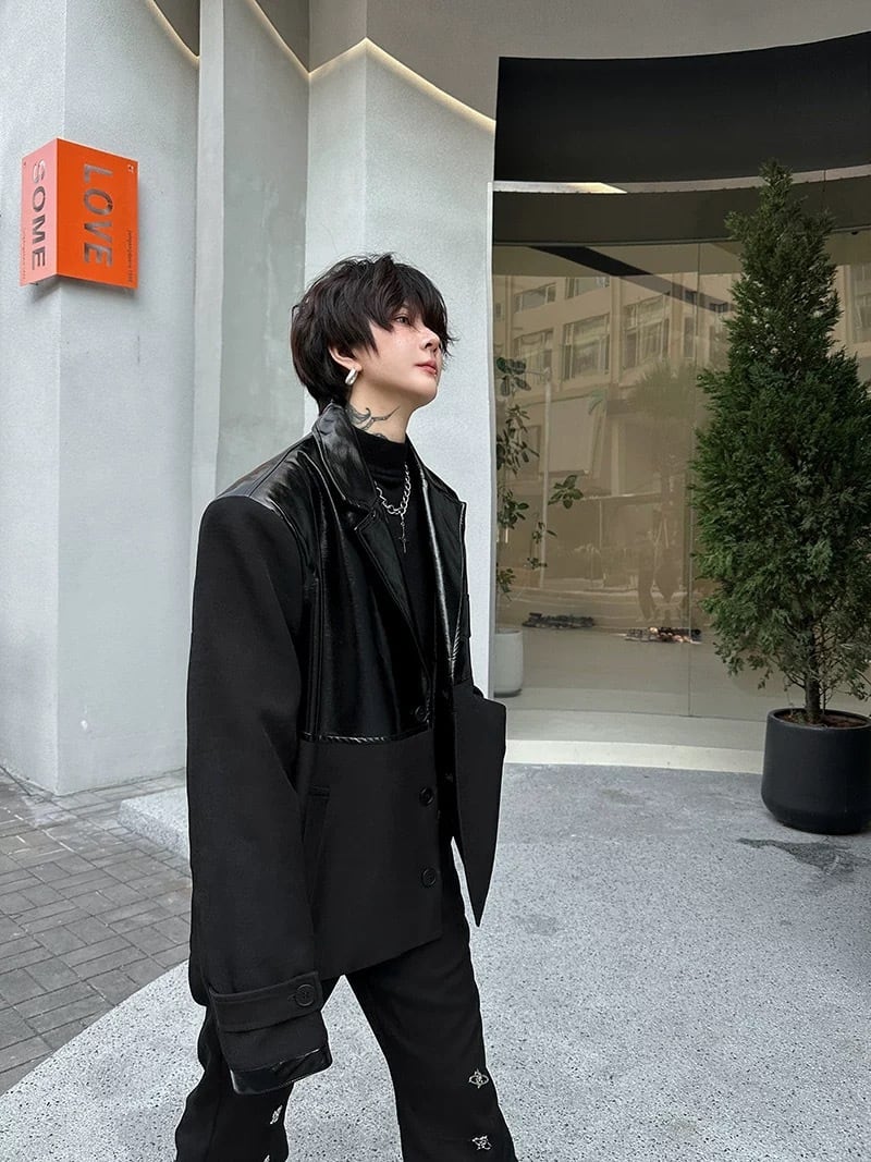 MIST メンズ M〜XL 個性的 切り返しPUレザージャケット ライダースジャケット おしゃれメンズ 秋冬 アウター 個性的 病みかっこいい メンズファッション 大きサイズ ユニセックス 韓国系 mist24100401